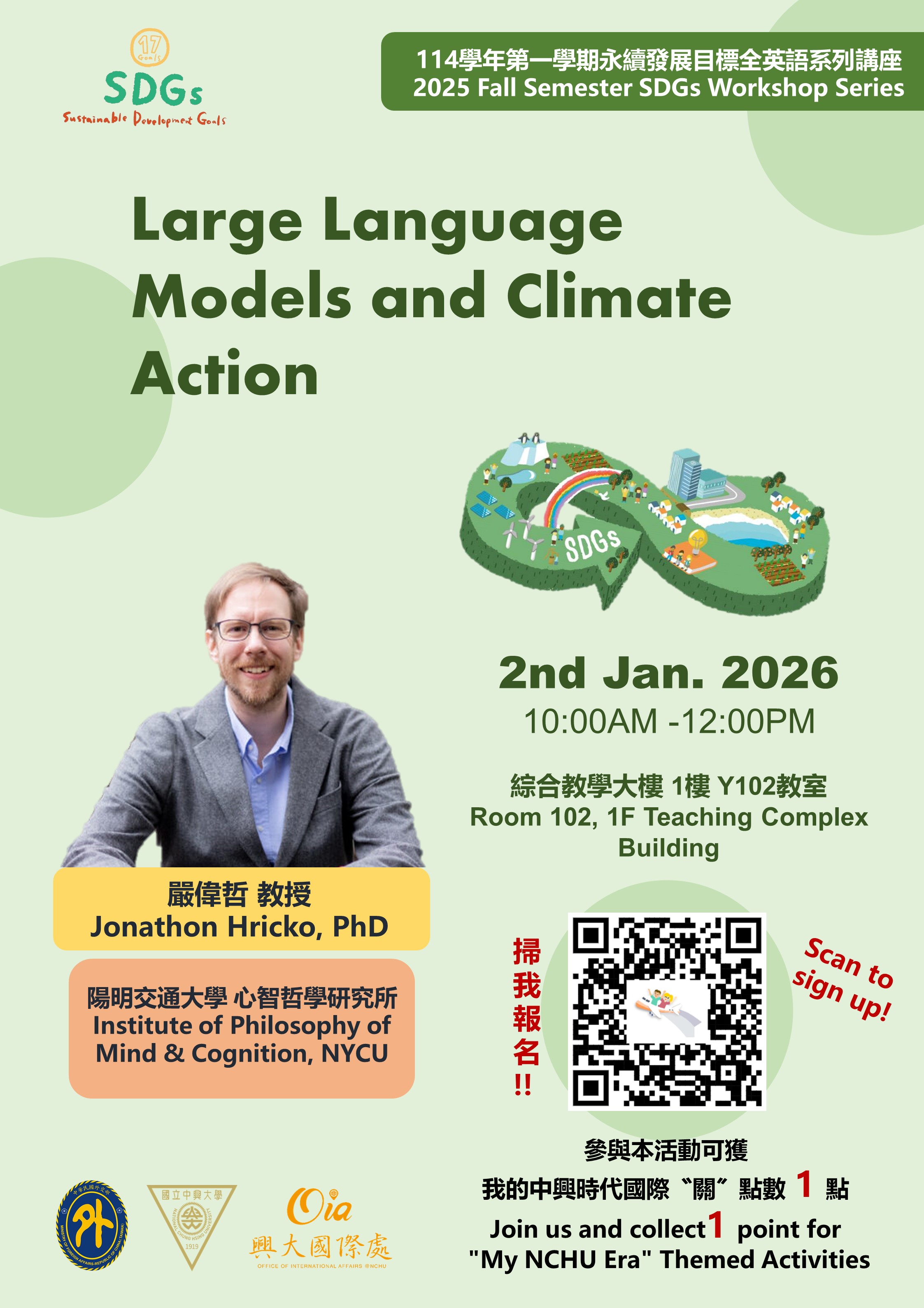 From a comprehensive introduction to the 17 SDGs to specific topics, experts and scholars from various fields will be invited to conduct workshops, allowing us to gain a deeper understanding of how the Sustainable Development Goals are closely connected to our daily lives.