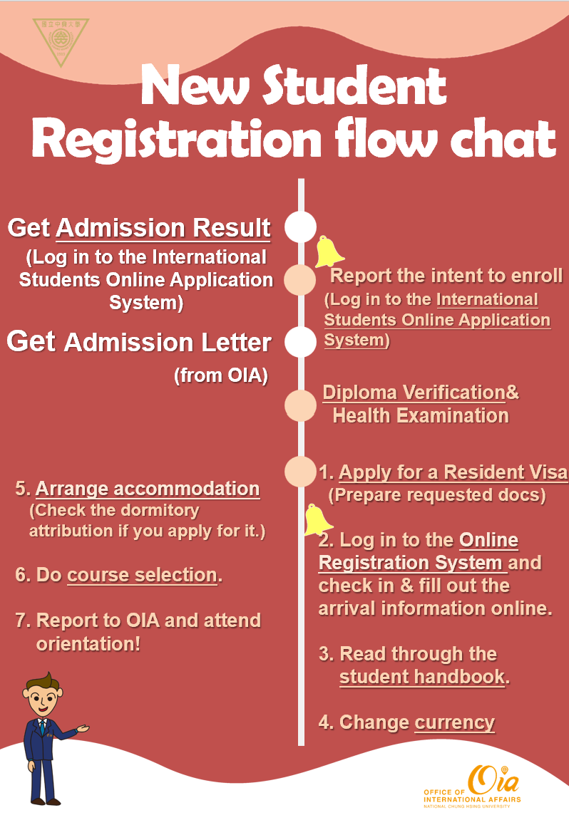 We recommend you apply for a Resident Visa, so that you can apply for an Alien Resident Certificate (ARC). Even if you are from a visa-free country, you shall apply for Resident Visa in advance as well. Students who enter Taiwan with a Resident Visa or a Visitor Visa (for foreign exchange students) are required to apply for an “Alien Resident Certificate” (ARC) and a multiple re-entry permit at the National Immigration Agency Taichung Service Centers within 30 days upon arrival in Taiwan.