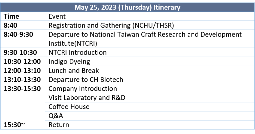This time, we are going to visit National Taiwan Craft Research and Development Institute (NTCRI), and CH Biotech R&D Co., LTD.!!