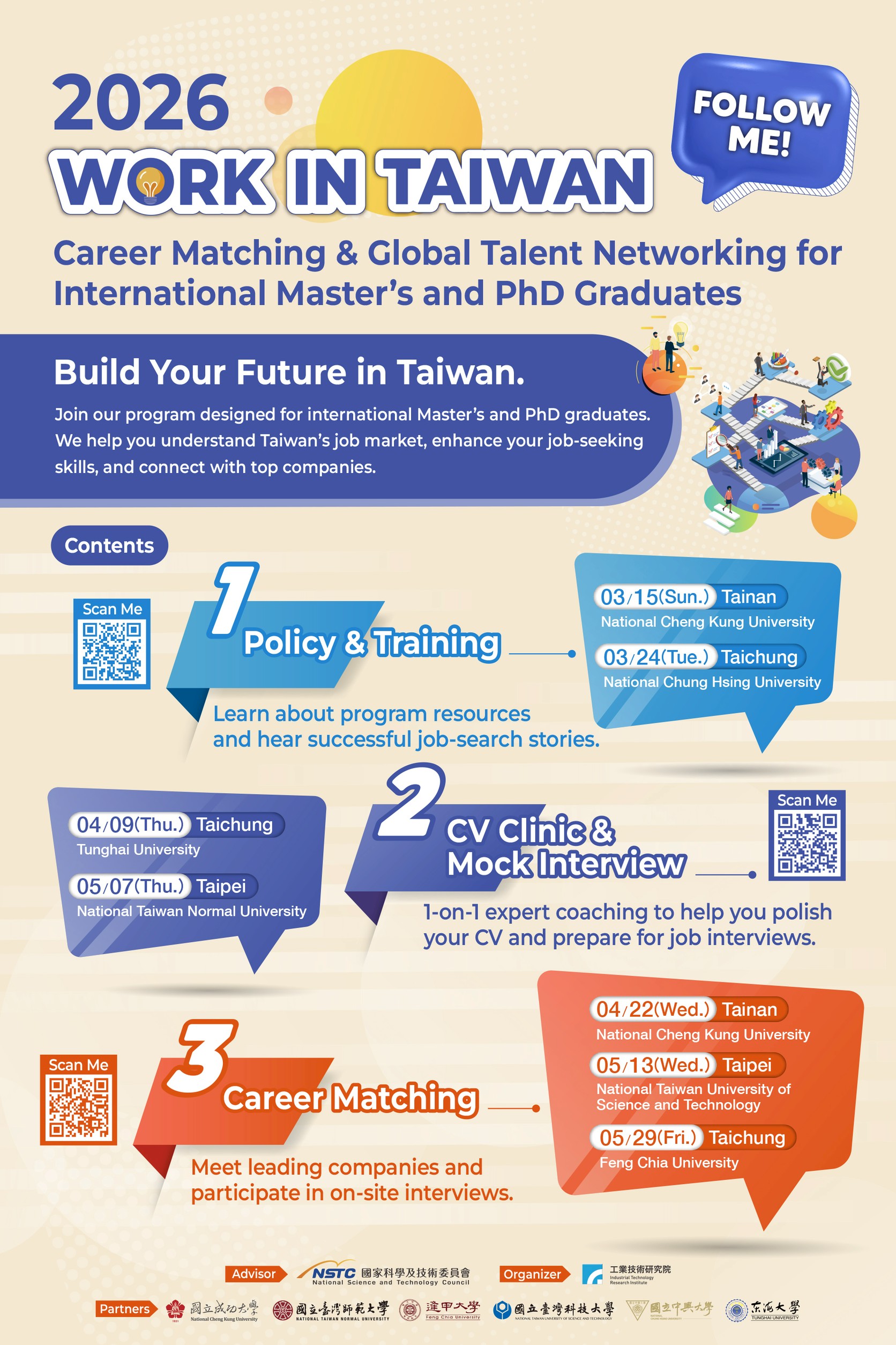 Join the "WORK IN TAIWAN - Follow Me" Career Matching event for an exclusive, hands-on session designed to give you a competitive edge in the local job market.
