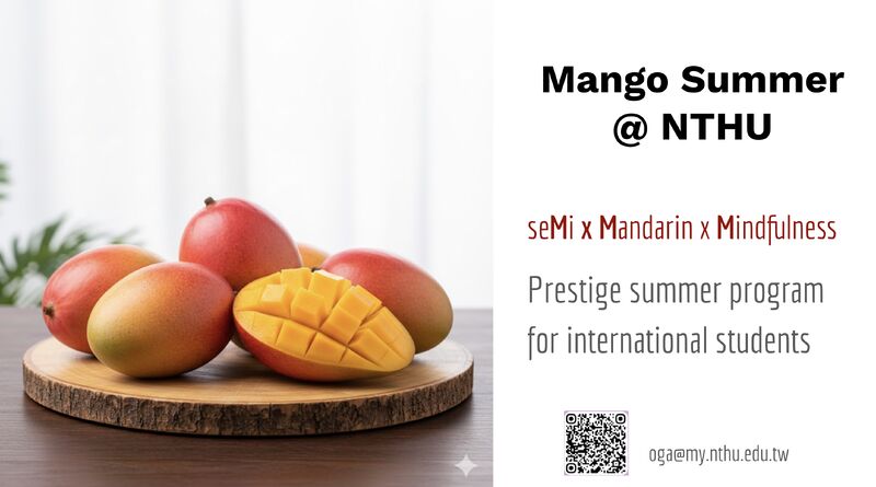 NTHU will be hosting the 2026 Mango Summer Program (MSP). This is a four-week program designed for international students and Mandarin learners, featuring courses on Taiwan’s technology industry, practical Mandarin communication, and cultural experiences.