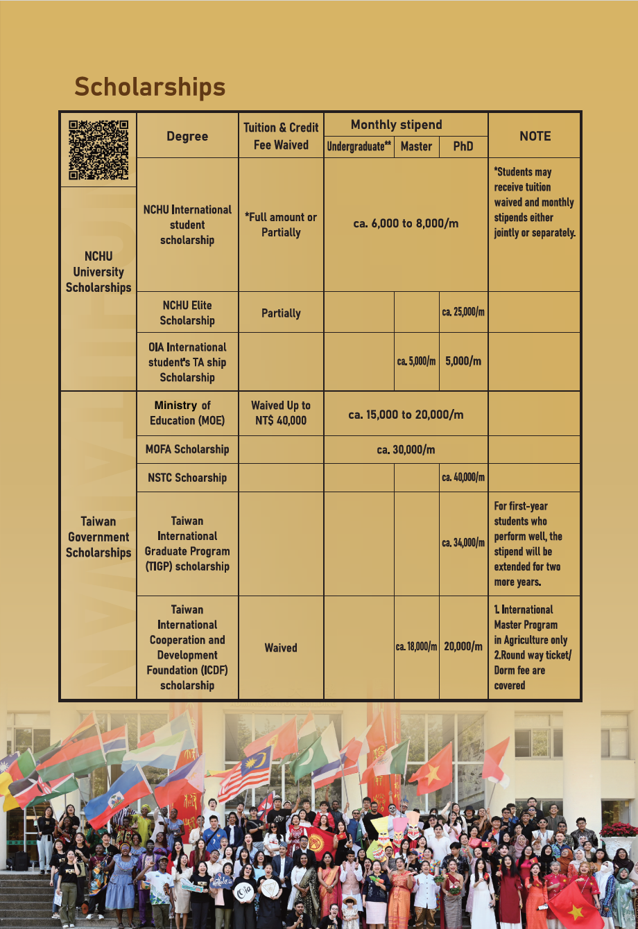 Note: NCHU Scholarship is divided into two parts: tuition waiver and monthly stipend