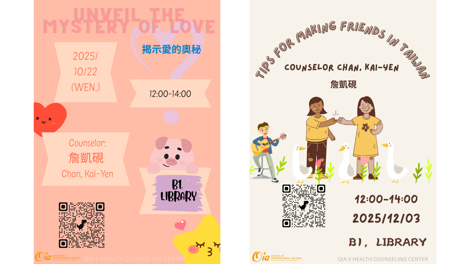 🧑🤝🧑 在台灣交朋友的秘訣 Tips for making friends in Taiwan! | 圖書館地下室一樓 Library B1 | 詹凱硯 專任諮商心理師 |