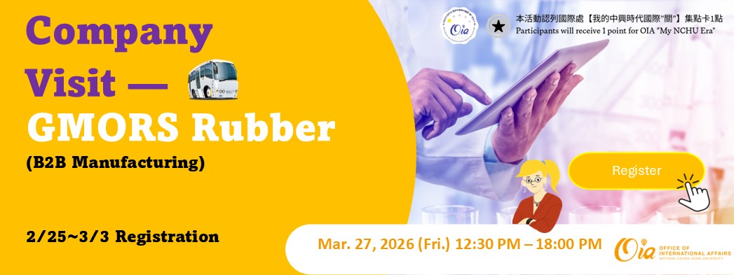 | NCHU就業博覽會 | 2026/3/21 (Sat) 10:00-15:00 | 惠蓀堂 | 今天參加就業博覽會的企業中,有60間都有歡迎僑外生投遞的職缺,同學們務必把握機會到現場跟企業人資聊聊! |