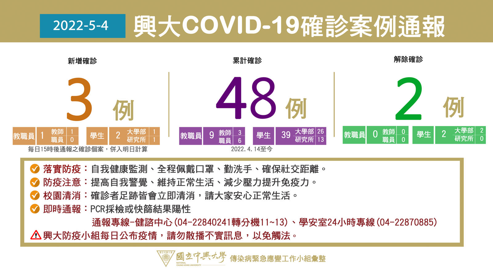 【防疫通報1110504】新增3例、累計48例、解除2例