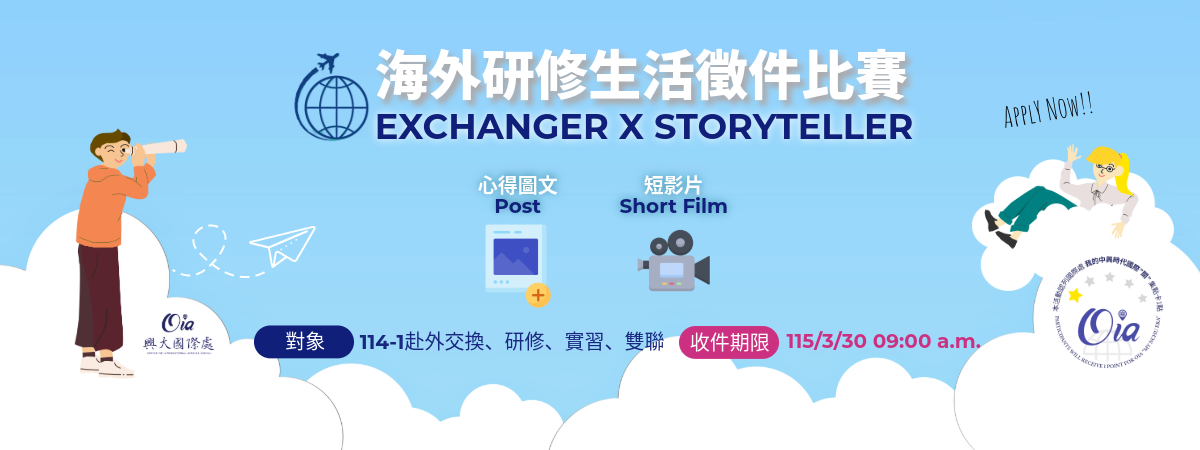 【本處】海外研修生活徵件比賽 EXCHANGER X STORYTELLER(114-1赴外)